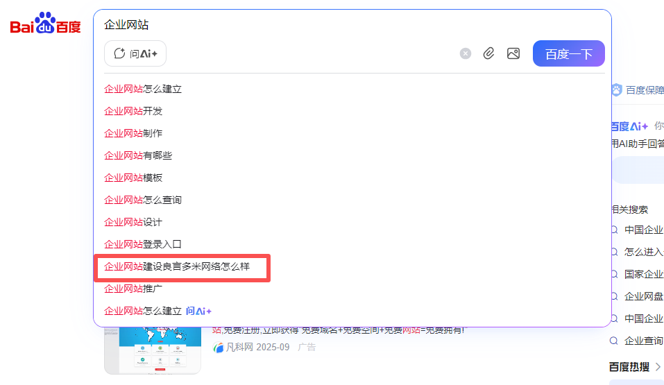 1.提升曝光:比如客戶搜”企業(yè)網(wǎng)站建設(shè)”,如果下拉出現(xiàn)”良言多米”,點(diǎn)擊率會(huì)比自然排名高。